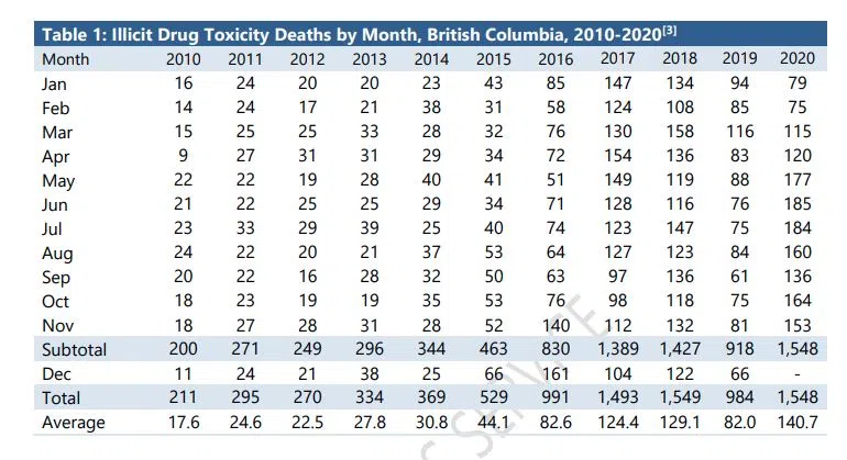 Another grim month in British Columbia with another 153 overdose deaths reported in November, taking the provincial total to 1,548 – just one shy of the record set back in 2018.