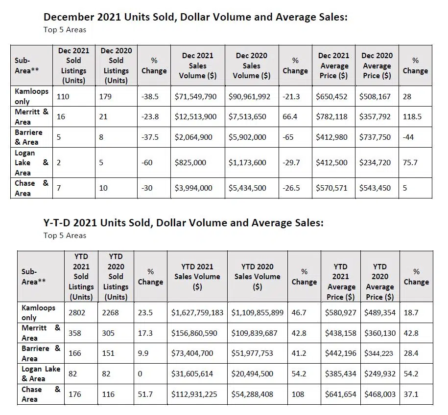#Kamloops & dist. #realestate market completes a record-breaking year with 3689 units sold in 2021.