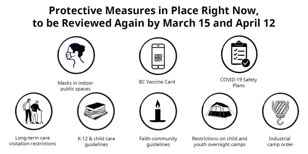 Masks and COVID-19 vaccine cards will still remain in place, as will the requirement that businesses have COVID safety plans.