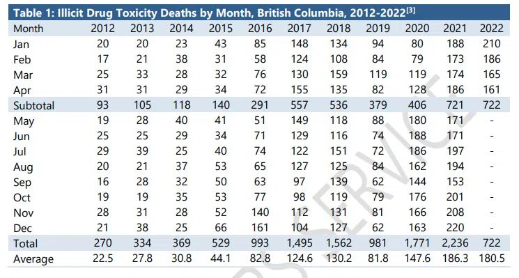 “BC Coroners Service data for the first four months of 2022 shows us that our province is on the path to yet another tragic milestone in terms of lives lost,” Lapointe added.