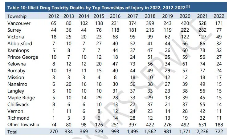 That brings the total number of toxic drug-related deaths to 32 in Kamloops this year, the same as Abbotsford with only Vancouver (171), Surrey (77), and Victoria (49) recording more such deaths through the first four months of the year.