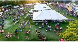 Aerial shot of 2020 Ribfest event in Riverside Park
