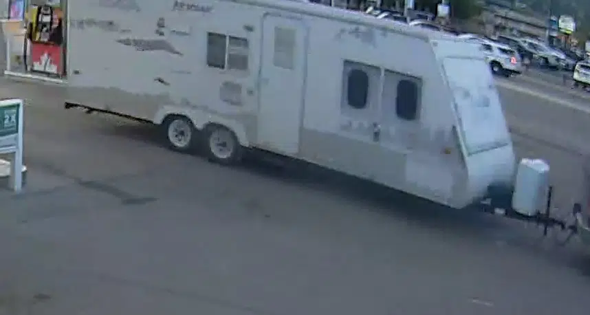 The travel trailer at a Merritt gas station on July 7, 2023. (Photo via RCMP)