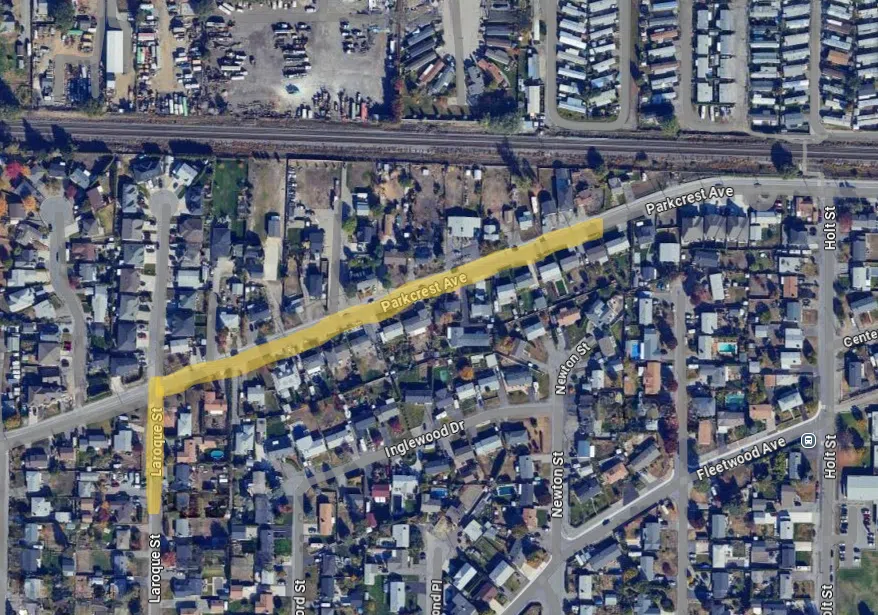 Parkcrest Avenue area Kamloops RCMP describe as being part of their search warrant action on Wednesday morning/via Google Maps