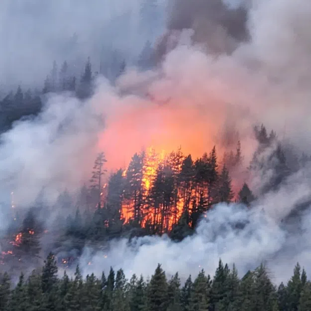 A closer view of the early hours of the now-named Cantilever Bar fire southwest of Lytton/via Tricia Thorpe