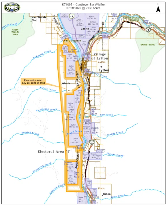 Evacuation alert map issued by the Thompson Nicola Regional District on Monday evening/via TNRD
