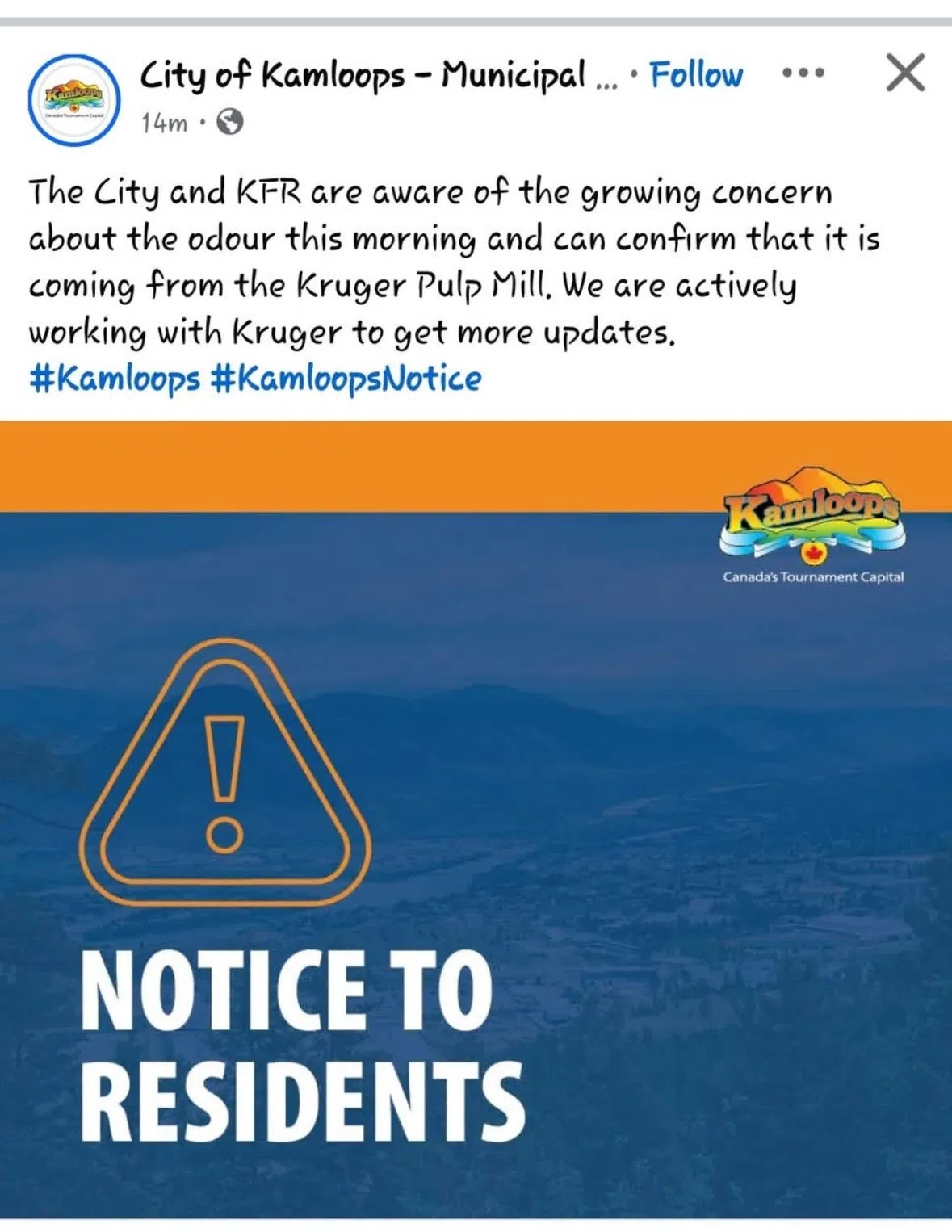The City of Kamloops put out its own notification on social media at around 10am to advise residents of the situation.