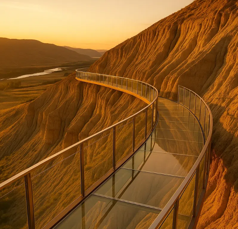 The Skywalk over Hoodoos, developed in partnership with the Scw̓éw̓wen Economic Development Corporation (the business arm of Tk̓emlúps te Secwépemc), offers a culturally immersive cliffside experience that highlights Indigenous storytelling, culinary programming, and low-impact design.
